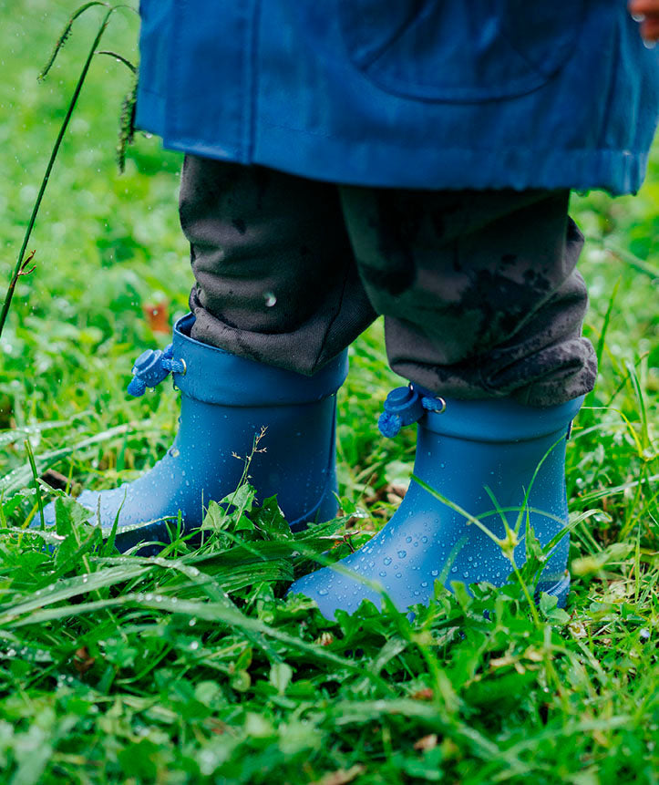 Rain boots made of PVC. Smaller boot shaft so that kids have an easy time walking. Toggle closure. Waterproof.