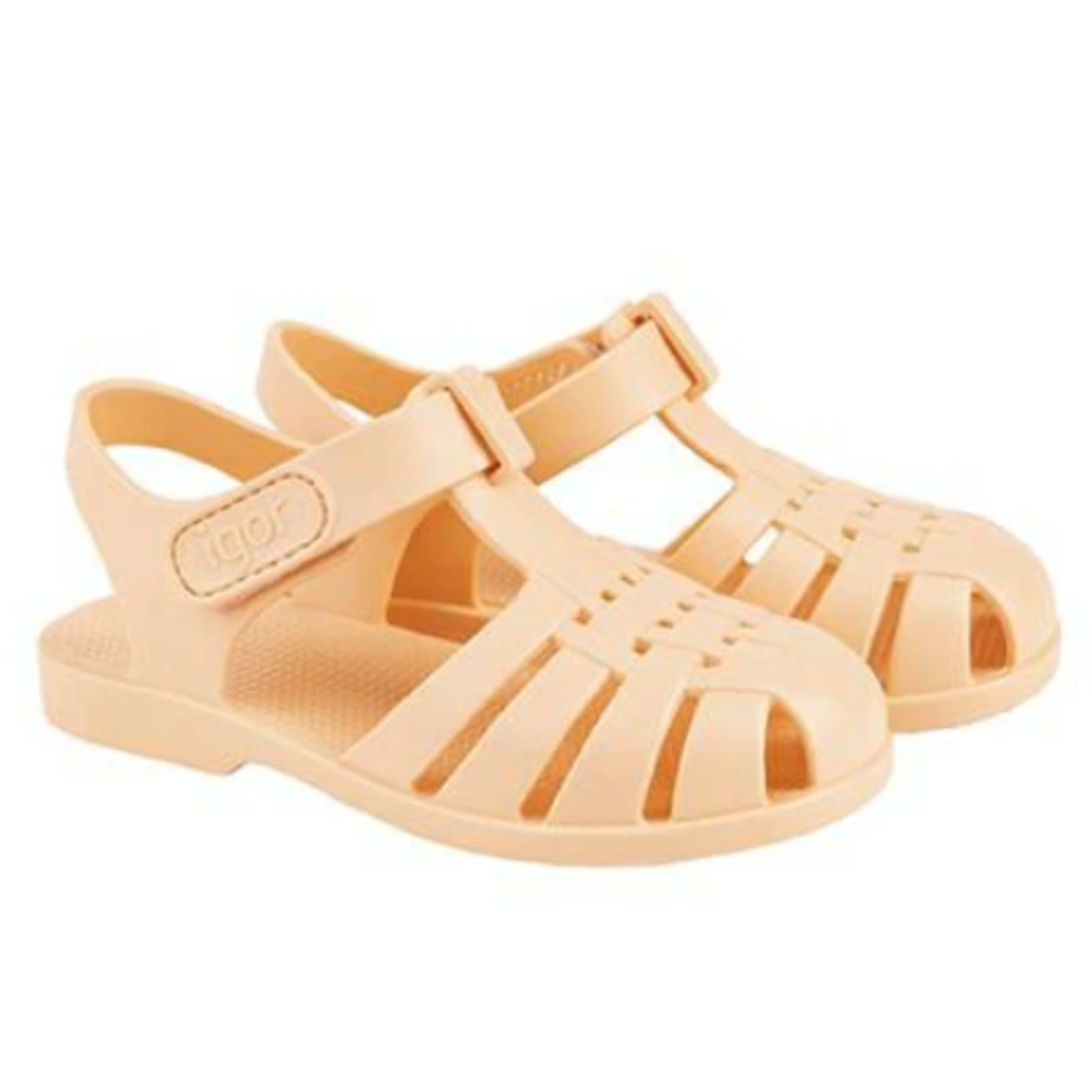 Jelly shoes! A hook and loop closure. Scandi colors.